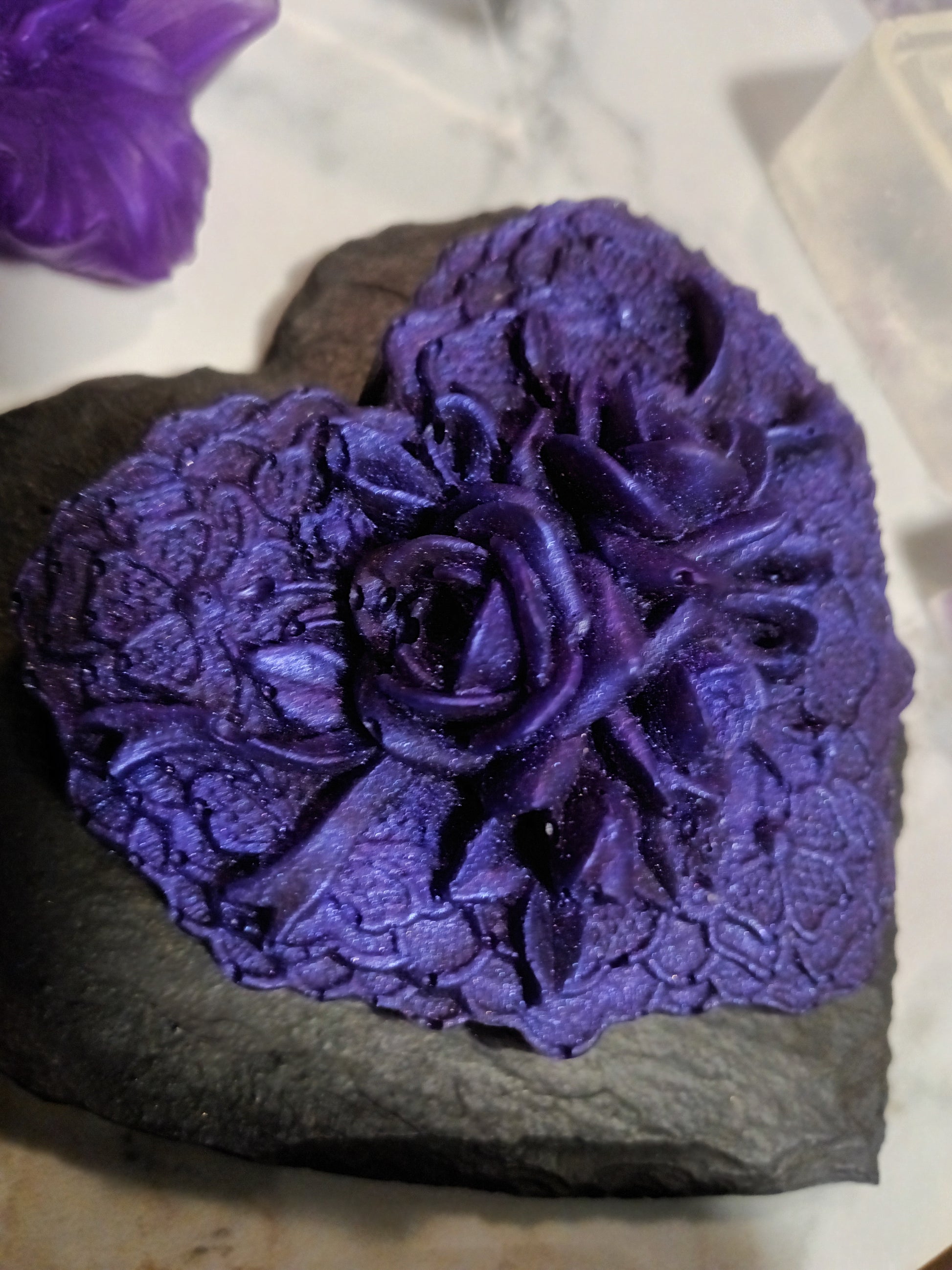 This indulgent bath and hand soap is lovingly handmade and customizable with a range of scents and colors available. Treat yourself or a loved one with a luxurious and unique gift that is sure to please. With its beautiful design and high-quality ingredients, this soap will elevate any mood or daily routine. Beautiful Heart of Roses Soap, gentle on skin, lathers well, smells great